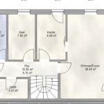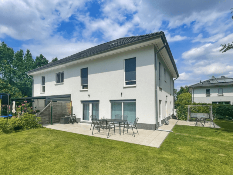 Die Doppelhaushälfte wurde 2017 auf einem ca. 387 m² großen Grundstück erbaut und hat eine Wohnfläche von ca. 155 m², die sich über das Erdgeschoss, ein Obergeschoss und einen Spitzboden verteilen.