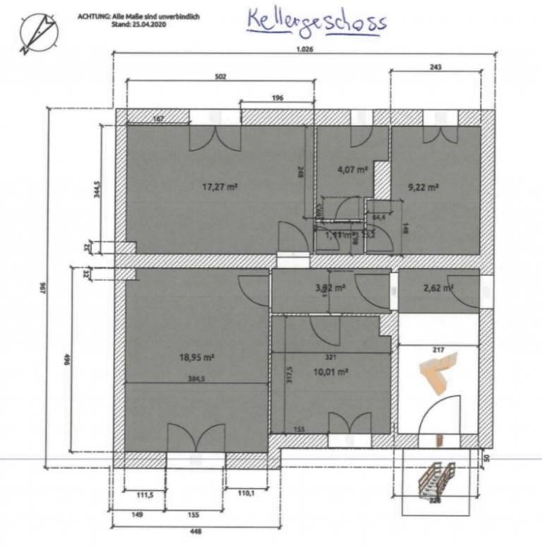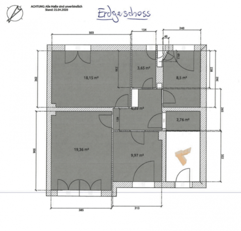 Es bietet sich an, das Gebäude abzureißen und einen Neubau zu errichten mit einer erzielbaren Wohnfläche von ca. 480m².