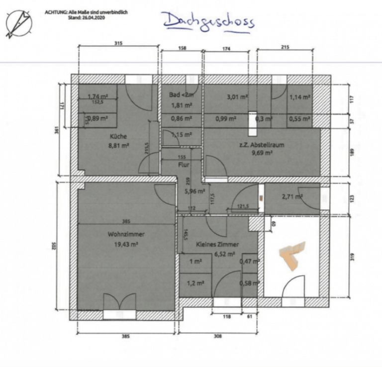 Die Wohnung im Dachgeschoss ist zur Zeit noch vermietet, die anderen Flächen sind bereits leerstehend.