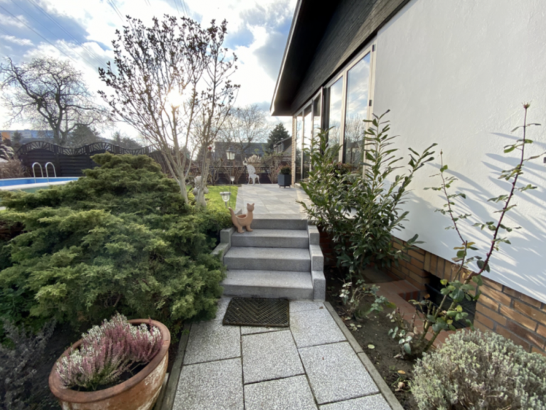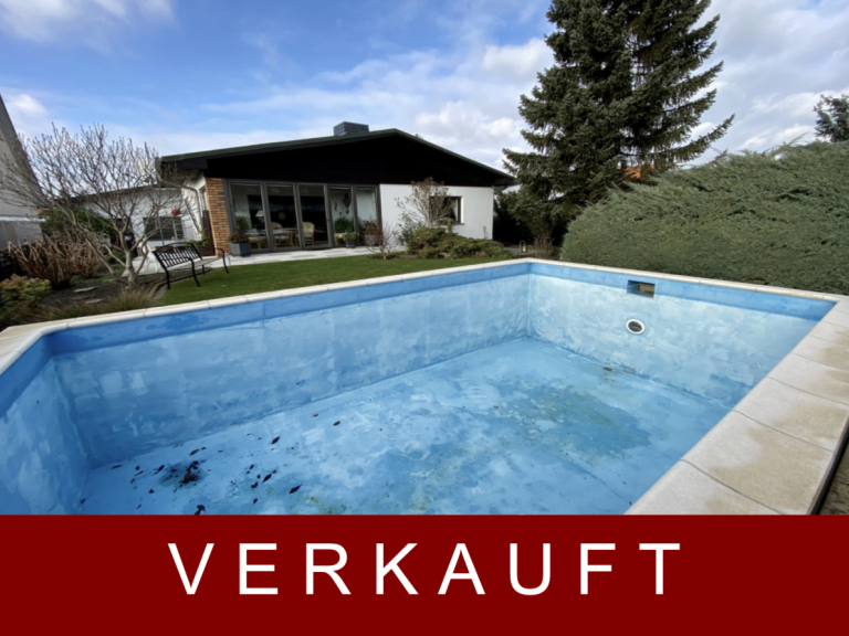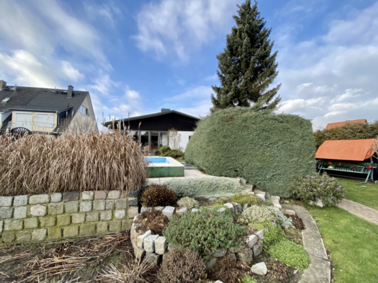 Das ca. 797 m² große Grundstück vermittelt einen sehr gepflegten Eindruck und ist mit einem charmanten und ebenfalls sehr gepflegten Bungalow, einer Garage, einem Carport, einem Gartenhaus und einem ca. 4m x 5m großen Pool bebaut.