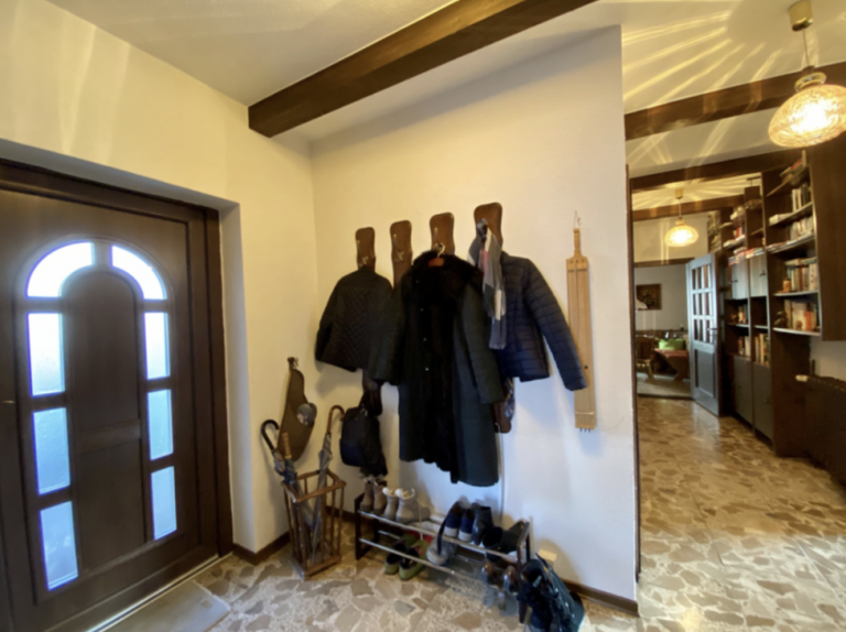 Der Flur ist mit schönen Fliesen, das Wohnzimmer und das Arbeitszimmer sind mit Fertigparkett, und das Schlafzimmer ist mit Auslegware ausgestattet. Die Wände sind mit Tapeten versehen.