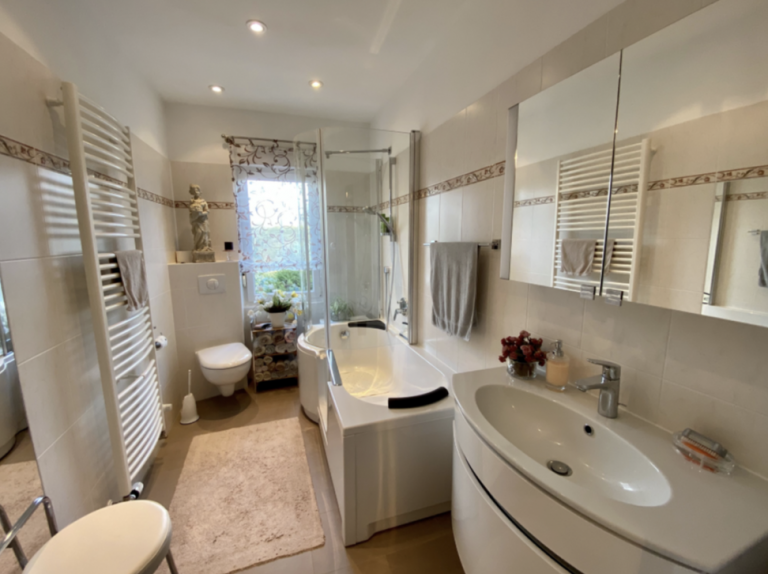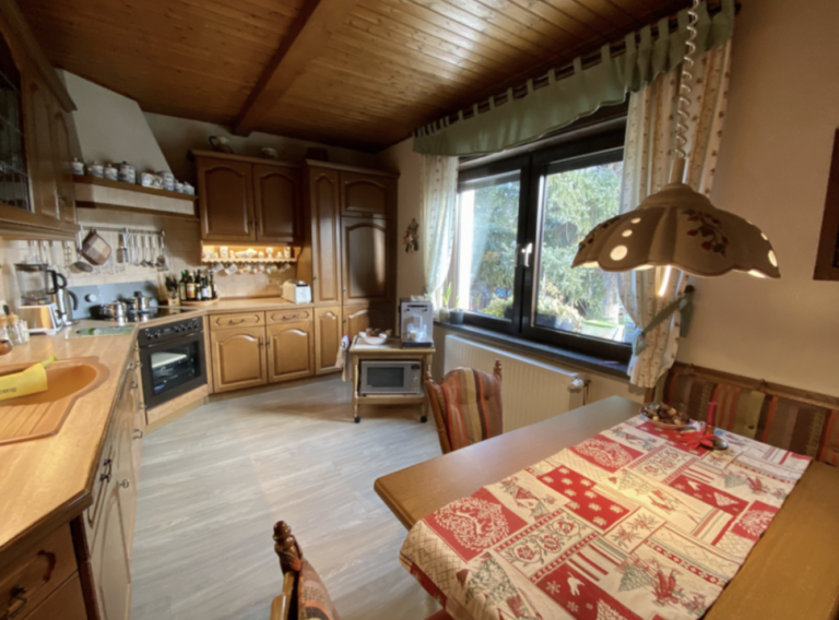 Auf ca. 122m² Wohnfläche verteilen sich ein Arbeitszimmer, ein Schlafzimmer, ein modernes Wannenbad, ein modernes Duschbad, eine Küche, die mit einer rustikalen Einbauküche ausgestattet ist und Platz für eine praktische Sitzecke bietet, und ein Wohnzimmer mit gemütlichem Wintergarten. Das Haus verfügt zudem über ein Kellergeschoss mit Hobbyraumflächen und einer Waschküche.