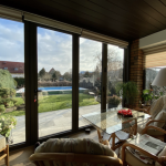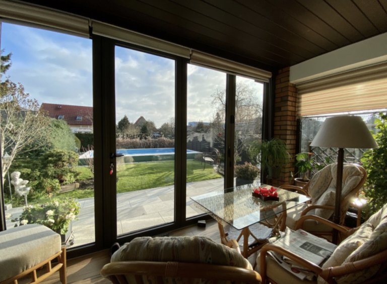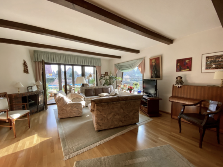 Große Fensterfronten verleihen dem Haus Helligkeit. Ein Kamin im Wohnzimmer lädt zu gemütlichen Stunden im Winter ein. Und ein weiterer Kamin befindet sich im Wintergarten. Die Kamine laufen über einen Zug. Der Wintergarten ist zudem mit einer Fußbodenheizung ausgestattet.