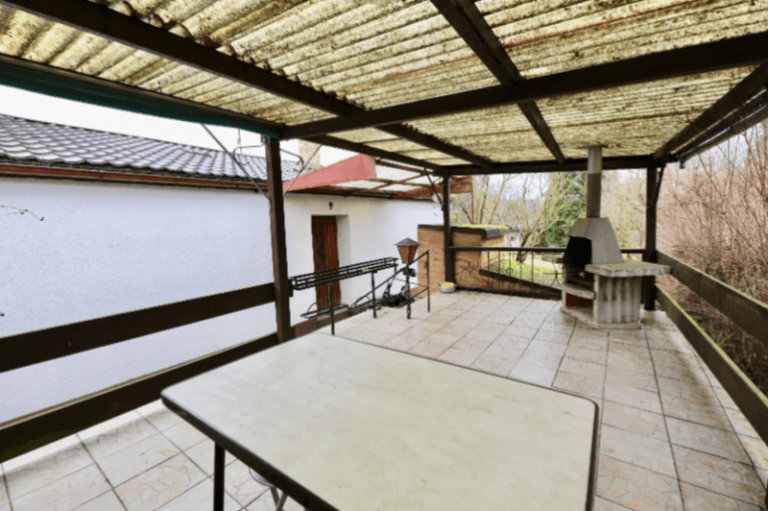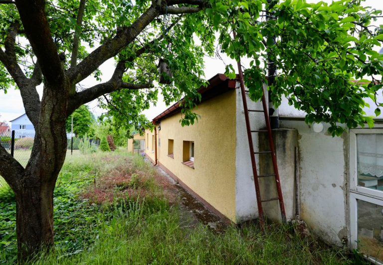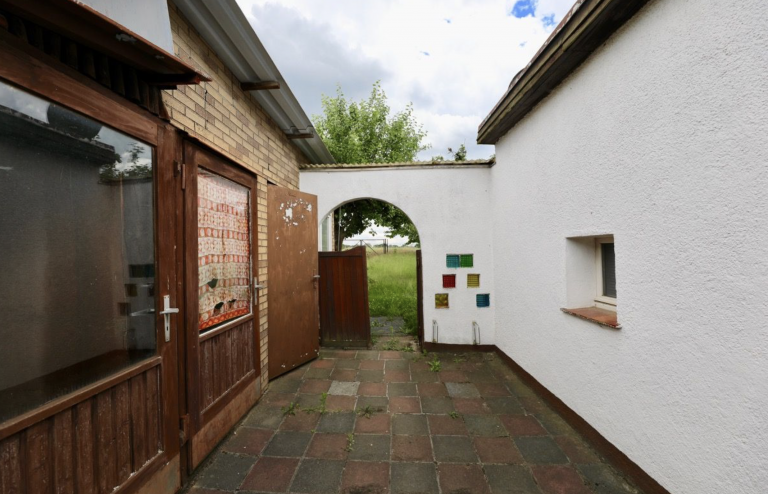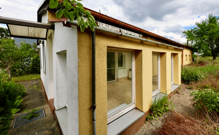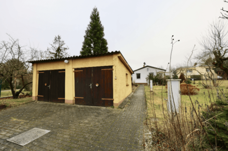 Auf dem schönen Grundstück befinden sich ein Bungalow mit mehreren Anbauten im unsanierten Zustand. Neben dem Gebäude befindet sich eine überdachte Terrasse, unter der sich ein Keller befindet. Im vorderen Bereich sind zwei einzelne Garagen vorhanden.