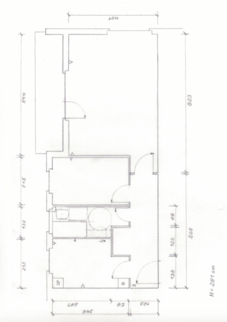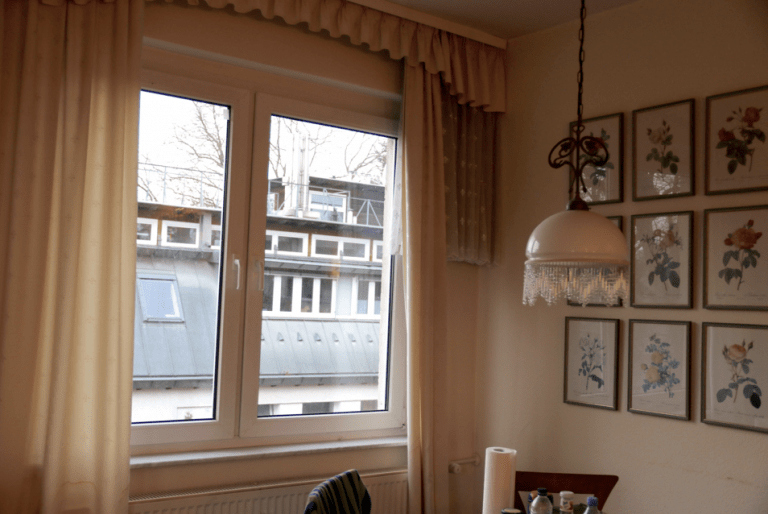 Geradezu vom Eingangsbereich befindet sich die Küche, die Platz für einen kleinen Frühstückstisch bietet und mit einem wunderschönen Terrazo-Boden ausgestattet ist. Nebenan befindet sich das Badezimmer, welches ebenfalls vom Flur aus zu erreichen und mit einer Badewanne ausgestattet ist. Angrenzend ist das Schlafzimmer gelegen.