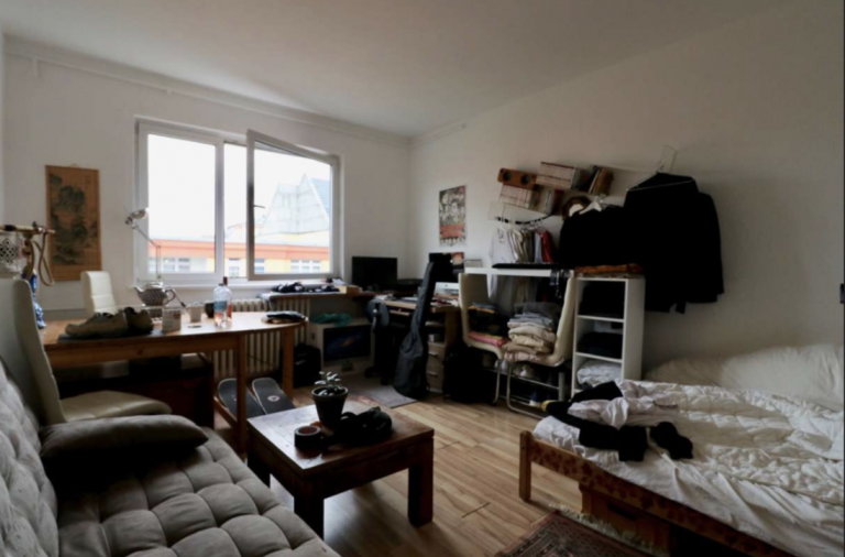 Der Fußboden ist mit Laminat ausgestattet. Die doppelverglasten Fenster zur Straße sind aus Kunststoff, die Fenster zum ruhigen Innenhof sind aus Holz.