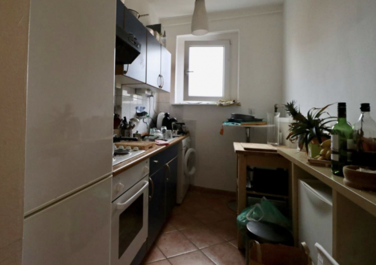 Auf ca. 51 m² verteilen sich zwei Zimmer, ein hell gefliestes Duschbad, sowie eine Küche mit Einbauküche.