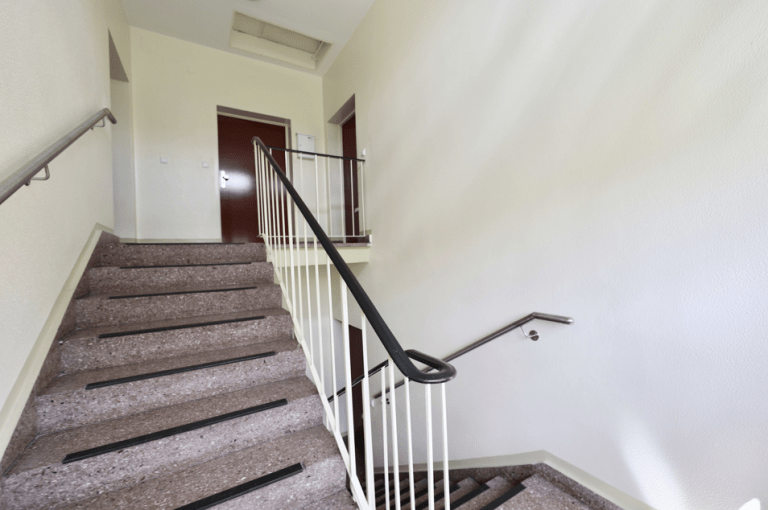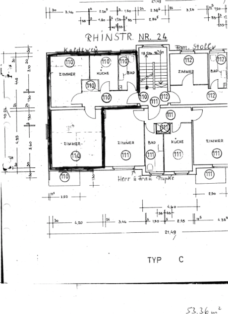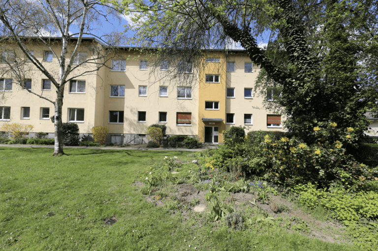 Die zweigeschossige Wohnanlage wurde 1962 erbaut, und die Wohnung befindet sich im obersten, also in der 2. Etage des ruhig gelegenen Gebäudes.
