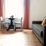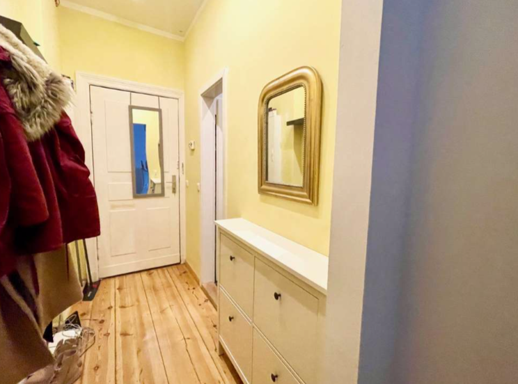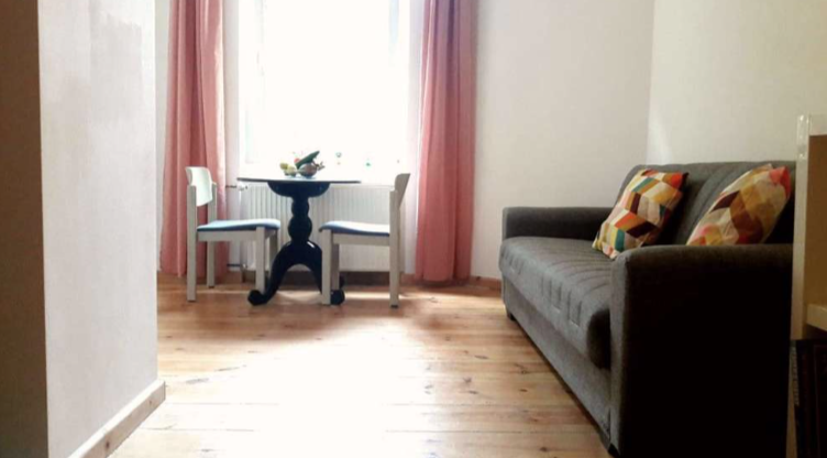 Die Wohnung ist mit Holzdielen ausgestattet, die Wände sind gespachtelt, und die Kunststofffenster sind doppelt verglast.