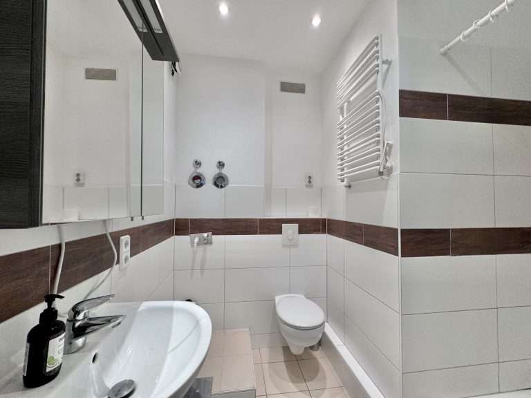Die Wohnräume sind mit Fertigparkett ausgestattet. Das Badezimmer ist modern gefliest.