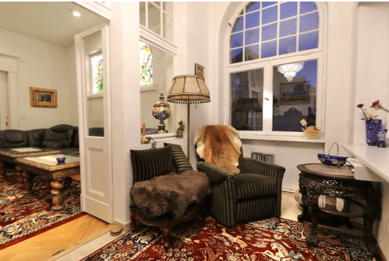 Des Weiteren ist die Wohnung mit Doppelkastenfenstern aus Holz ausgestattet. Die zum Lichthof gelegenen Fenster und zum Nebengebäude ausgerichteten Fenster im Esszimmer und Wohnzimmer sind mit Buntglas versehen.