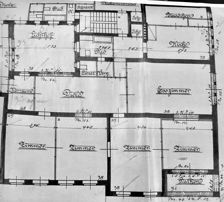 Das repräsentative Wohn- und Geschäftshaus wurde 1910 erbaut und besteht aus einem Gebäude mit zwei integrierten Lichthöfen.