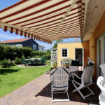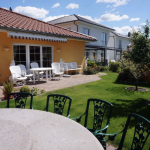 Bei schönem Wetter laden die Terrasse und der sehr gepflegte und liebevoll gestaltete Gartenbereich ein. Ein runder Granit-Steintisch mit drehbarer Mittelplatte und mit schmiedeeisernen Stühlen bietet genügend Platz beim Grillen für eine gemütliche Runde mit bis zu 13 Personen.
