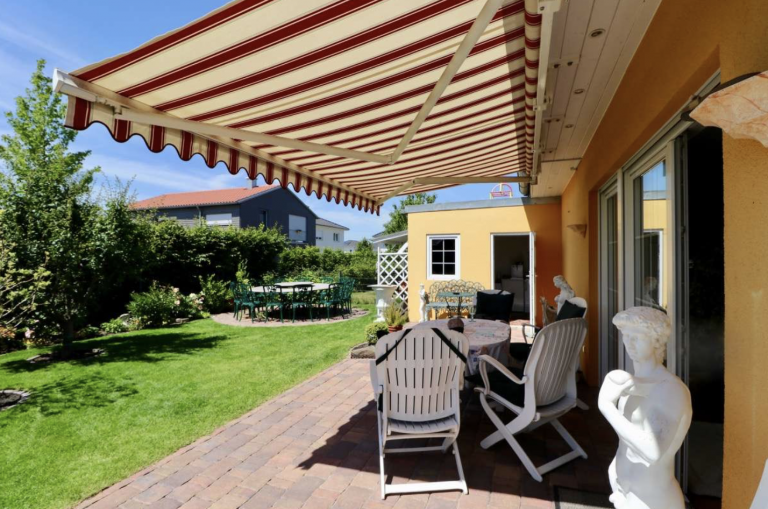 Der Bungalow wird mit einer modernen Gas-Solarkombination über eine Fußbodenheizung beheizt. Elektrische Rollläden an allen Fenstern und eine elektrische Markise bieten einen hohen Komfort. Hochwertige Bodenliesen und Parkettböden in den Schlafzimmern und im Wohn-/Esszimmer wirken elegant.