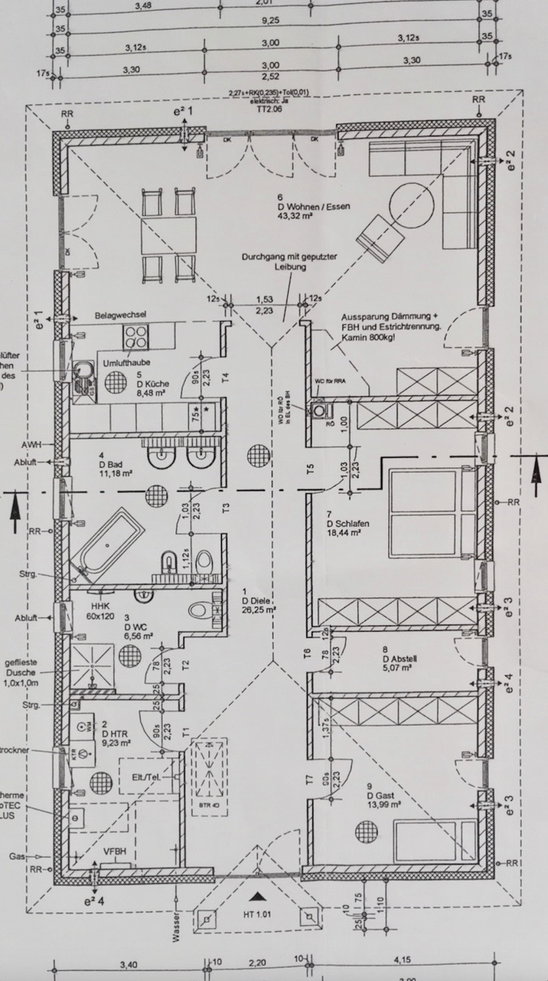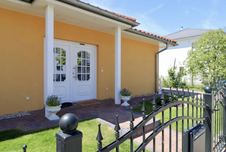 Der Bungalow wurde erst 2013 gebaut und sticht aus der Bebauung der Nachbarschaft mit seiner fröhlich-gelben Fassade hervor, die ein italienisches Ambiente vermittelt. Die Wohnfläche beträgt ca. 143 m² - großzügig und barrierefrei geplant.