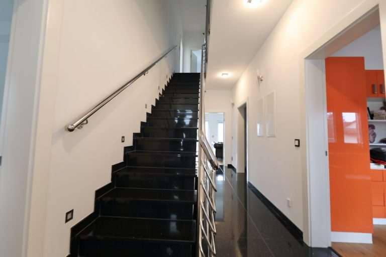 Die Innenausstattung kombiniert Granit und edles Eichenholz, die Innentüren sind aus besonders hochwertigem Material gefertigt und mit Zylindermagneten versehen, und die Wände wurden in Q4-Qualität gespachtelt, um ein makelloses Finish zu gewährleisten.
