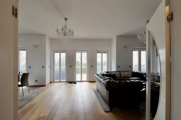 Die Wohnräume sind mit luxuriösem Eichen-Parkettboden ausgestattet, während edler Granitboden in den weiteren Bereichen für eine stilvolle Atmosphäre sorgt. Eine Deckenhöhe von 3 Metern verstärkt das großzügige Wohngefühl.