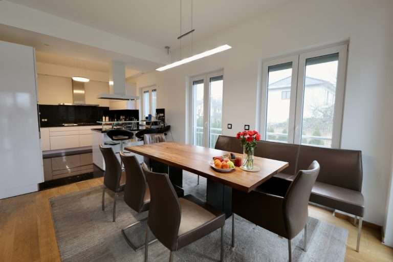 Mit 8 Zimmern wird viel Platz für die Familie, Home-Office oder repräsentatives Wohnen geboten. Herzstück der Wohnung ist der großzügige Wohn- und Essbereich.