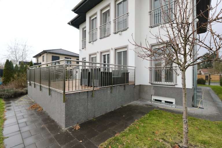 Die Außenanlagen überzeugen mit einer großzügigen Terrasse von ca. 20 m², die mit einem Edelstahlgeländer von Inox ausgestattet ist und ideal für gesellige Stunden im gepflegten Garten genutzt werden kann. Zusätzlich gibt es eine Grillstelle sowie eine vorbereitete Installation für eine Sommerküche im Garagenbereich.