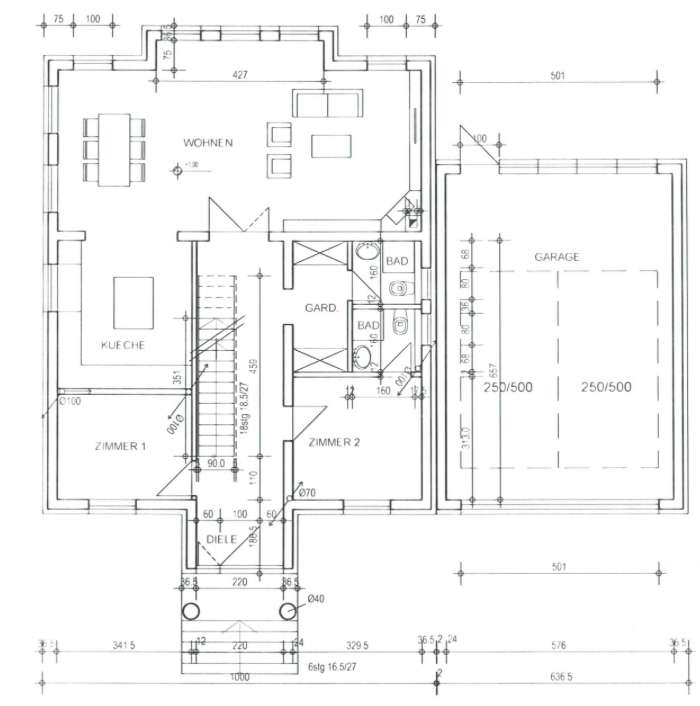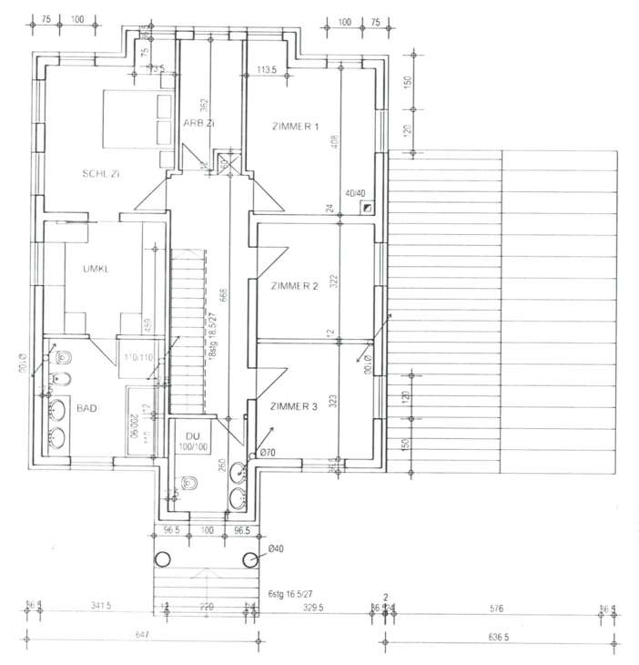Die massive Bauweise mit 40 cm starken Außenwänden sorgt für eine hervorragende Energieeffizienz und ein angenehmes Wohnklima. Die Geschossdecken sind aus massivem Beton gefertigt, einschließlich der Kellerdecke.