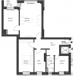 Die Wohnfläche beläuft sich auf ca 85 m². Der Eingangsbereich bietet Platz für die Garderobe. Zur wenig befahrenen Straße ausgerichtet, befinden sich zwei Schlafzimmer, das Bad und die Küche.