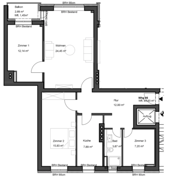 - alle straßenseitigen Fenster haben jeweils einen Öffnungsflügel mit Dreh-/Kippbeschlag und sind dreifach verglast
