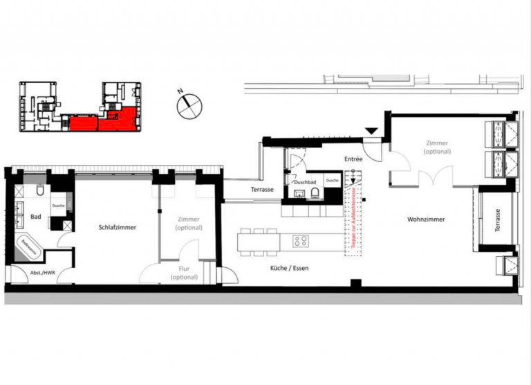 Von der Fläche des Wohnraums könnte auch noch ein Zimmer separat abgeteilt werden - als Gäste-, Arbeits- oder Kinderzimmer. Im Eingangsbereich ist zudem noch ein Duschbad vorhanden.