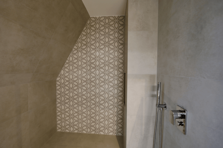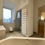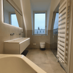 Das tagesbelichtete Badezimmer verfügt über ein Doppel-Waschbecken, eine Badewanne sowie eine separate Dusche. Der Hauswirtschaftsraum befindet sich neben dem Bad.