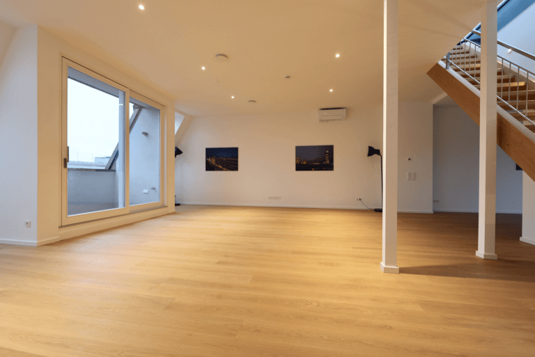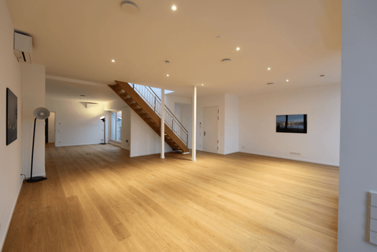 - Vollholz-Parkettboden mit Trittschalldämmung