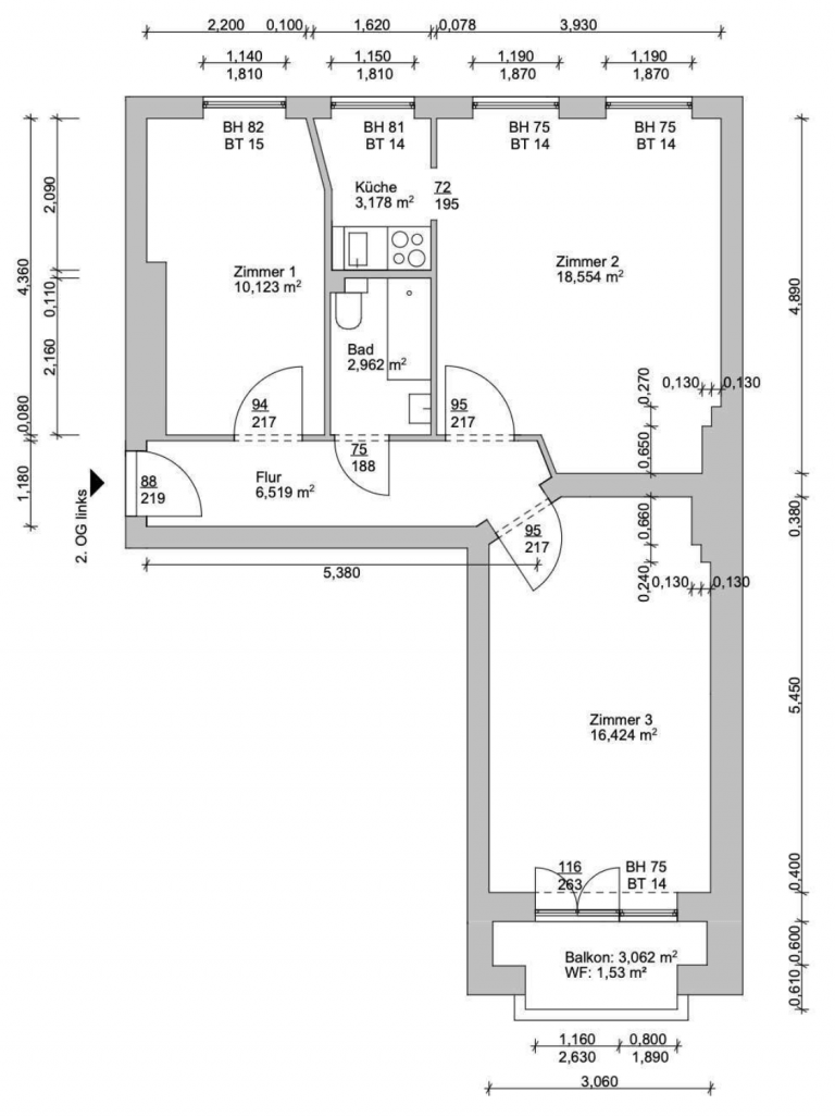 Die Wohnung vermittelt durch eine Raumhöhe von ca. 3 m ein sehr großzügiges Raumgefühl.