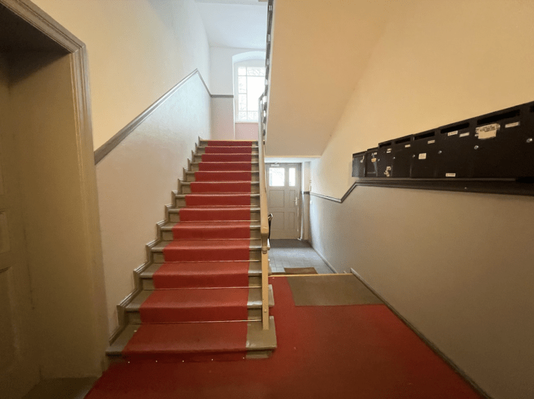 Die Wohnung befindet sich im zweiten Obergeschoss des Hinterhauses und ist über das Treppenhaus zu erreichen.