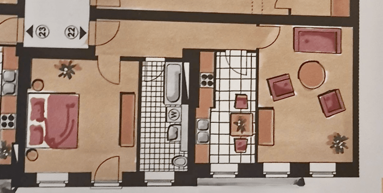 Auf einer Wohnfläche von ca. 69 m² verteilen sich zwei Zimmer; ein großzügiges, tagesbelichtetes Badezimmer, ausgestattet mit einer Badewanne und eine Küche.
