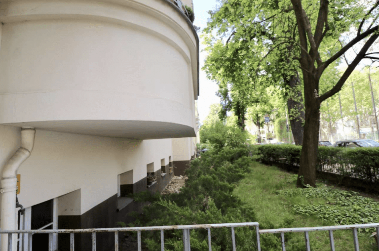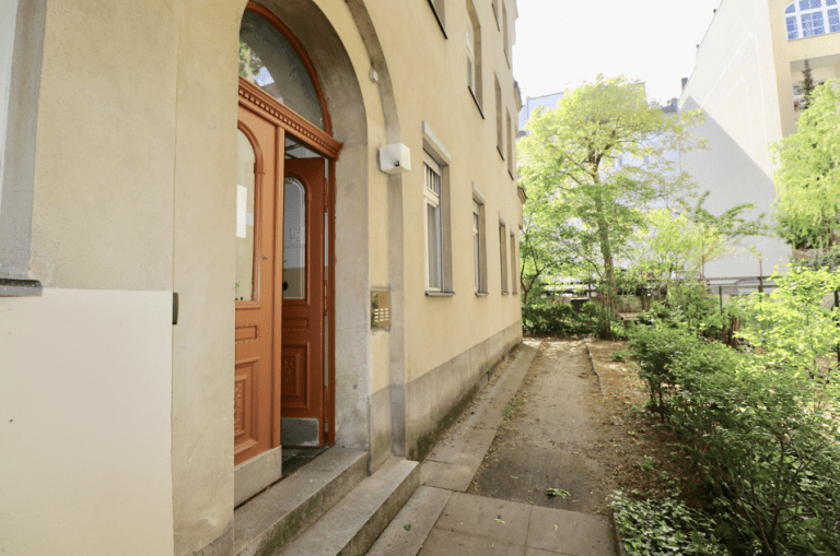 Das Mehrfamilienhaus wurde 1910 erbaut, steht unter Denkmalschutz und ist in eine Vorderhaus mit einem Seitenflügel aufgeteilt. Die Wohnung befindet sich im Hochparterre des Seitenflügels des 4-geschossigen Gebäudes.