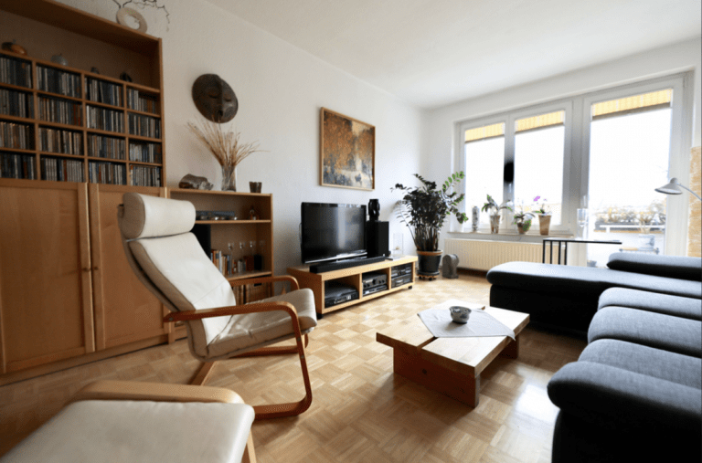 Die zwei Wohnungen sind durch einen Durchbruch miteinander verbunden und befinden sich im dritten Obergeschoss, also auf der obersten Etage des Wohnhauses.