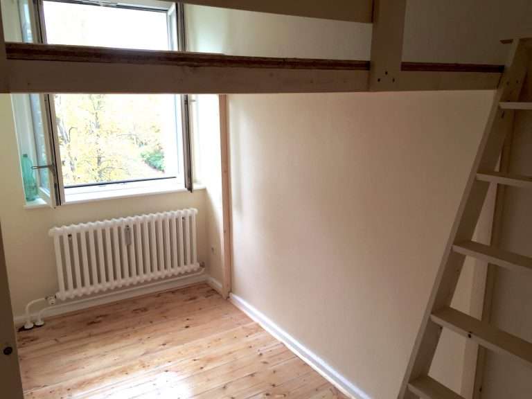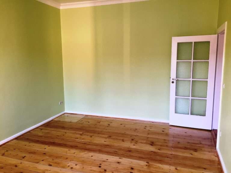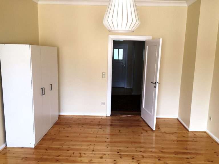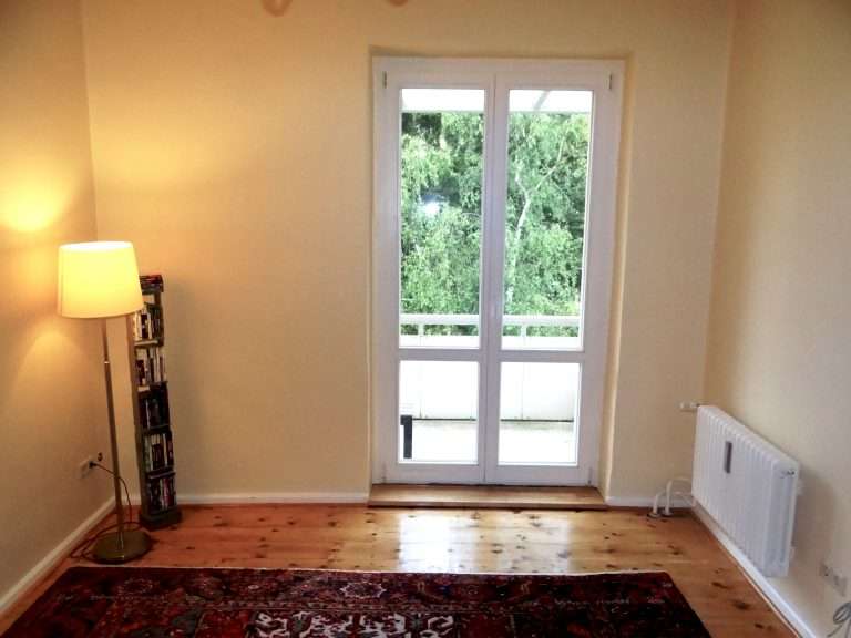 Die Wohnung wurde 2016 modernisiert und renoviert und verfügt ebenfalls über einen sehr großzügigen Eingangsbereich. Gegenüber vom Eingang befndet sich das Wohnzimmer, von welchem man den großen Balkon und die geöfnete Küche betreten kann. Die Küche ist mit einer modernen Einbauküche ausgestattet. Weiterhin gibt es noch zwei große Schlafzimmer, das halbe Zimmer und ein Badezimmer mit Badewanne und Fenster.
