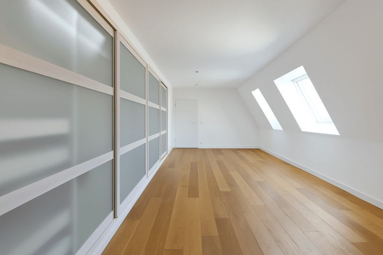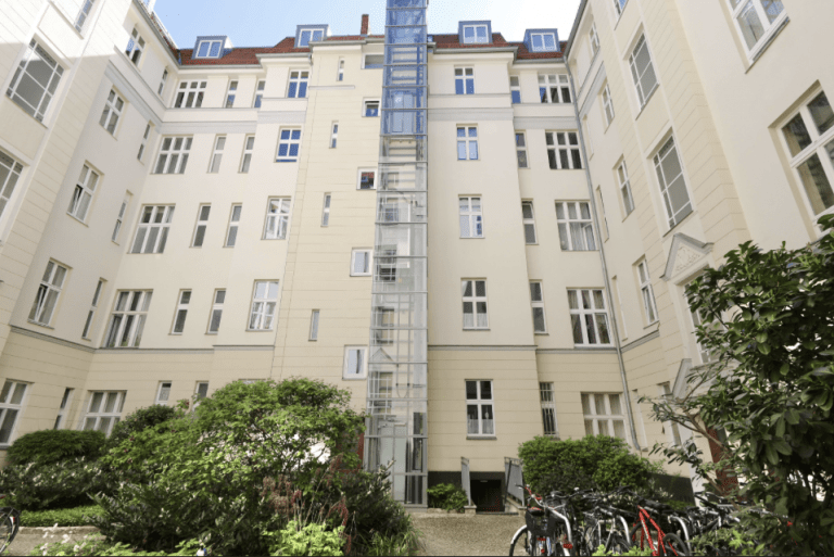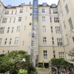 Die Wohnung ist im Gartenhaus gelegen und befindet sich im Dachgeschoss, welches 2013 ausgebaut wurde. Der Aufzug führt vom Hofbereich direkt in einen Vorraum zu der Wohnung.