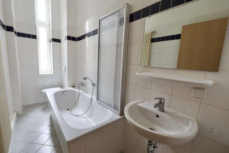 Die Wohnfläche von ca. 51 m² verteilt sich auf einen Eingangsbereich; ein tagesbelichtetes Badezimmer, ausgestattet mit einer Badewanne; eine Küche sowie zwei Zimmer, die durch einen Durchgang miteinander verbunden sind.