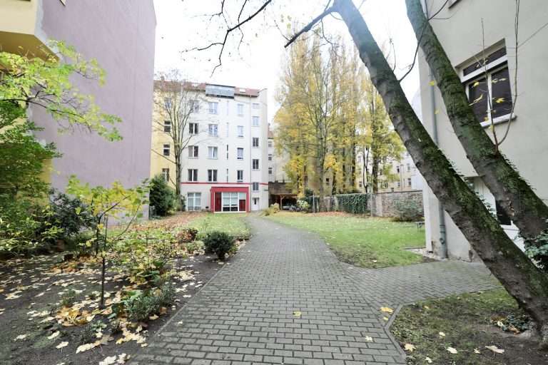 Das 5-geschossige Mehrfamilienhaus wurde 1900 erbaut, bestehend aus einem Vorderhaus und einem Seitenflügel. Die Wohnung befindet sich in der 3. Etage des Seitenflügels und ist über das Treppenhaus zu erreichen.