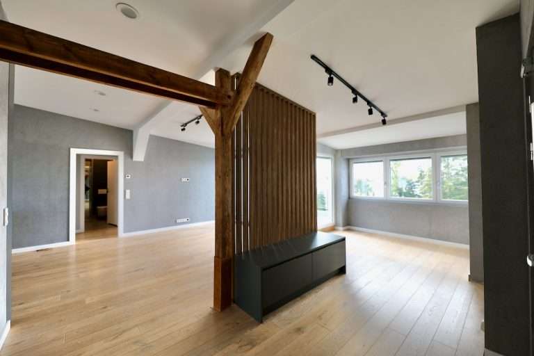 Ein optimaler Schnitt, hohe Decken, schöne Holzbalken, eine Fußbodenheizung und eine moderne Ausstattung zeichnen diese Wohnung aus.