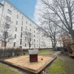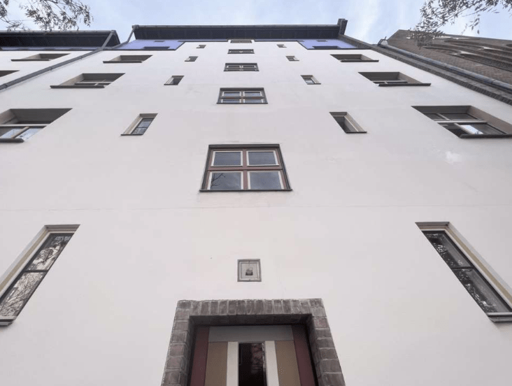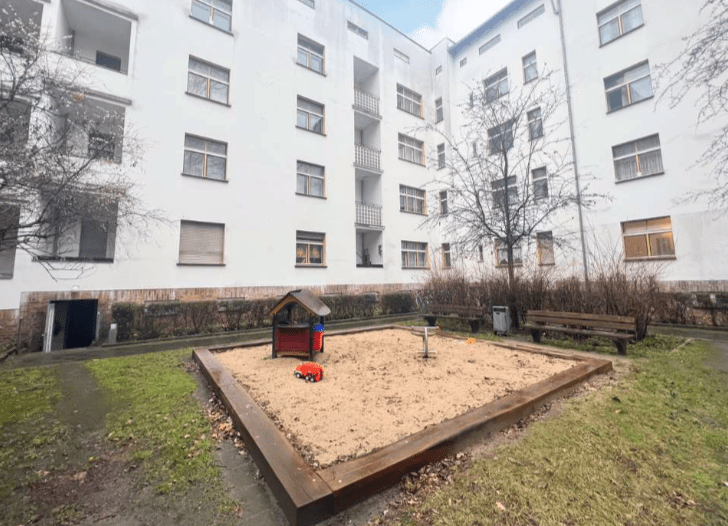 Die Wohnanlage befindet sich in einer ruhigen Seitenstraße in Friedrichshain in unmittelbarer Nähe zum Volkspark Friedrichshain. Der Bezirk ist einer der pulsierendsten und beliebtesten Bezirke der Hauptstadt.