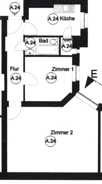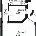 Die Wohnung ist im 1. Obergeschoss des Hinterhauses Mitte rechts gelegen. Die Wohnung verfügt über eine Wohnfläche von ca. 61,83 m². Die Wohnfläche verteilt sich auf insgesamt zwei Zimmer sowie einem Flur, einer Küche, einem Abstellraum und einem Badezimmer.