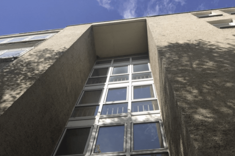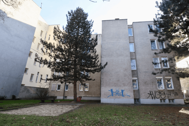 Die Küche, das Bad und ein Schlafzimmer sind nördlich zum Hof ausgerichtet. Das Wohnzimmer, das zweite Schlafzimmer und die Loggia, die von beiden Zimmern zugänglich ist, sind südlich zur Straße ausgerichtet. Die Loggia lädt an warmen Sommertagen zum Erholen und Entspannen ein.