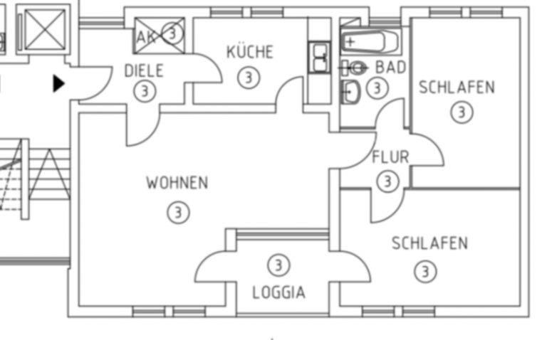 Die Wohnung befindet sich im 1. OG eines Mehrfamilienhauses, ist bequem mit dem Fahrstuhl zu erreichen und verfügt über ca. 86,37 m², die sich über drei Zimmer verteilen.