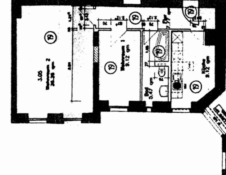 Die Wohnung befindet sich im zweiten Obergeschoss des ersten Hinterhauses und verfügt über eine Wohnfläche von ca. 57,74 m². Diese verteilt sich auf einen Flur, eine Küche inklusive Einbauküche und Anschluss für einen Gasherd und die Waschmaschine sowie auf ein tagesbelichtetes Wannenbad mit Handtuchwärmer und zwei Zimmer.