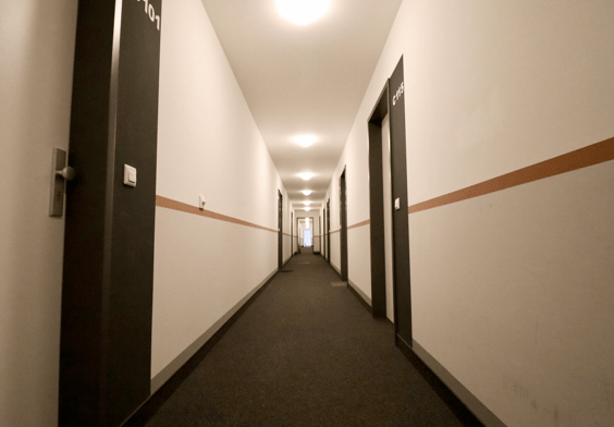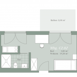 Die im Jahr 2011 komplett sanierte Wohnanlage verfügt über insgesamt 209 Wohnungen, aufgeteilt auf 3 Blöcke mit 2 bis 4 Etagen. Die 1-Zimmer Wohnung liegt im 2. Obergeschoss des Blockes C, mit 93 Wohnungen.