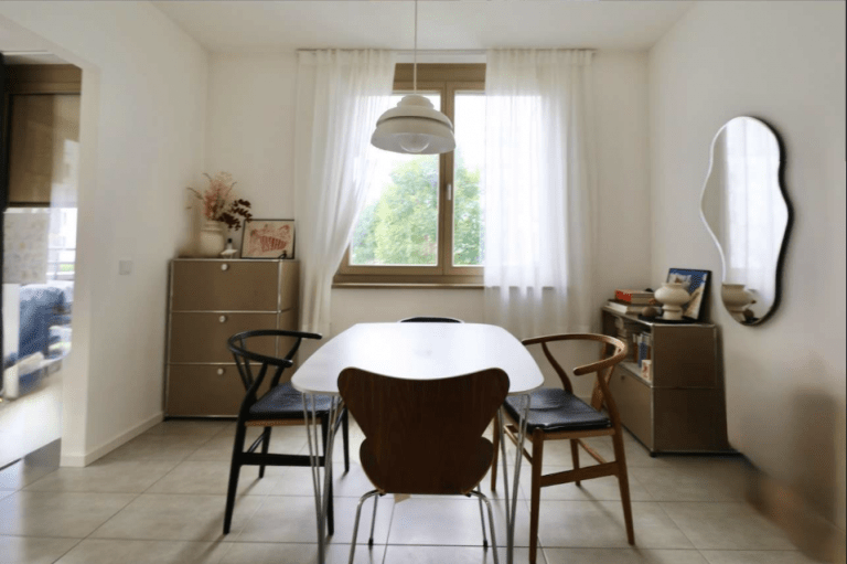 Die Wohnung befindet sich in der ersten Etage und ist bequem mit dem Aufzug oder über das Treppenhaus zu erreichen.