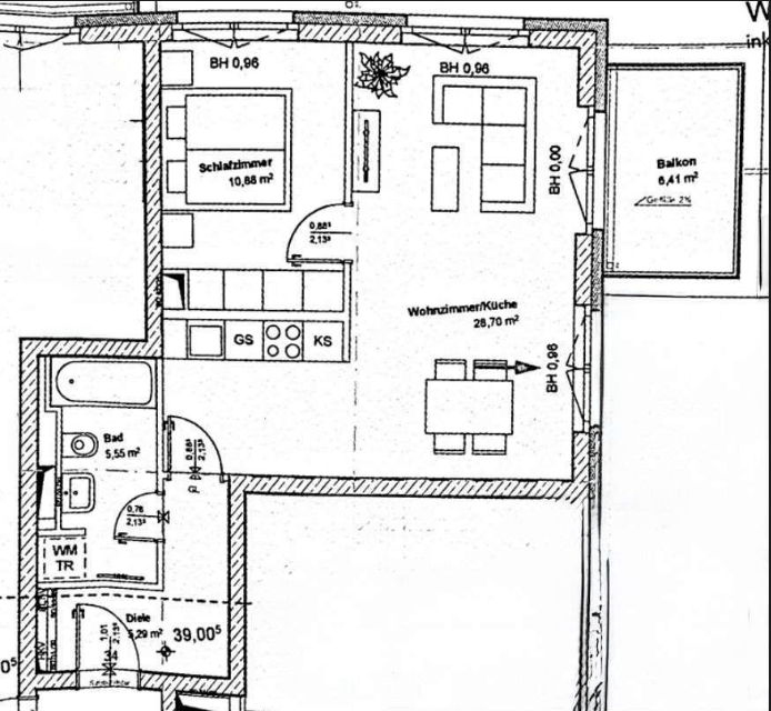 Mit einer Raumhöhe von ca. 2,75 m wird ein großzügiges Raumgefühl vermittelt. Die Wohnung ist mit einer Fußbodenheizung ausgestattet, die in allen Räumen für angenehme Wärme sorgt. Die Böden sind teils mit Fliesen, teils mit Parkettboden versehen Die Wände sind gespachtelt, und die Holzfenster sind dreifach verglast. Die Wohnung 2022 zuletzt renoviert.