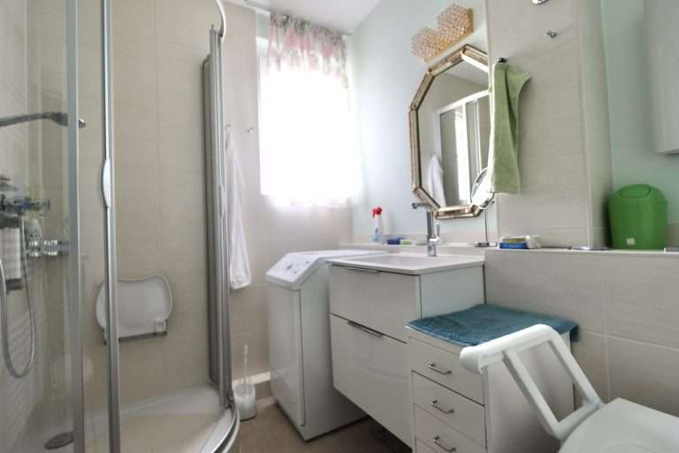 Die Wohnräume sind mit schönen Holzdielen ausgestattet, und das Badezimmer ist hell gefliest.
