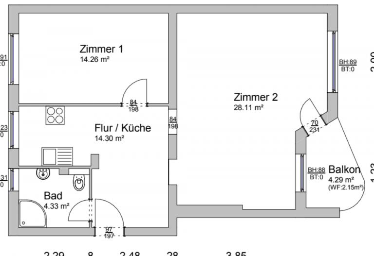 Die Wohnung verfügt über zweifach verglaste Kunststofffenster. Die Raumhöhe beträgt ca. 2,60 m und vermittelt ein angenehmes Raumgefühl.