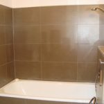 Auf ca. 43 m² verteilen sich ein Flur, ein Badezimmer mit Badewanne und ein großzügiger Wohn-Schlafbereich mit einer offenen Küche und moderner Einbauküche.